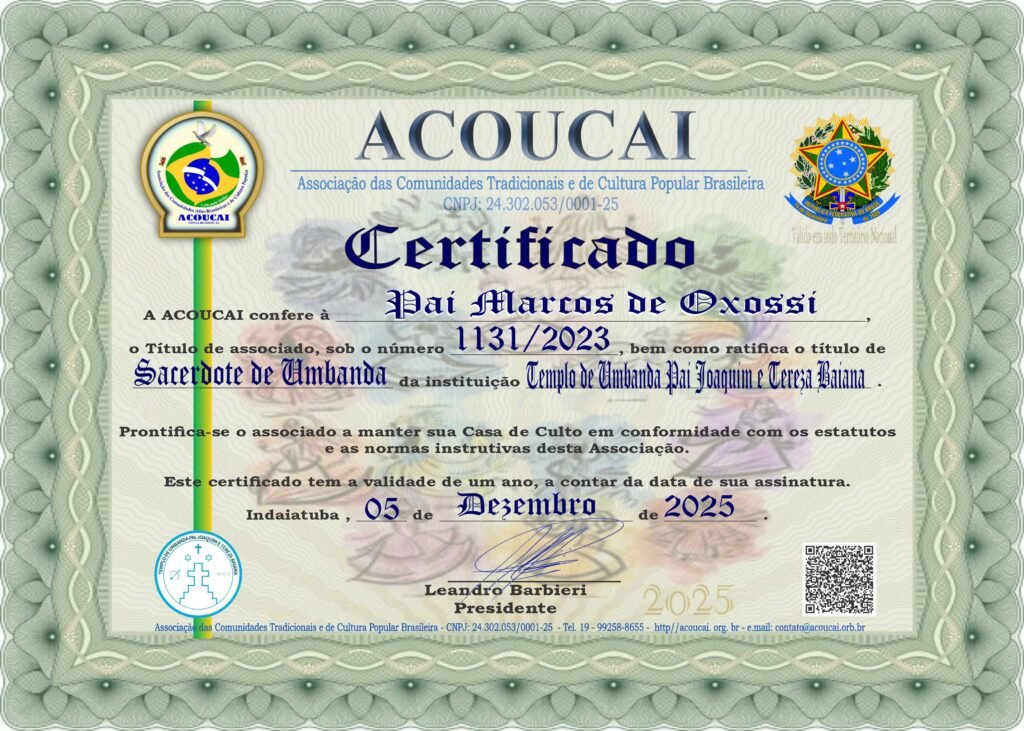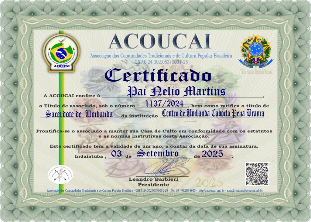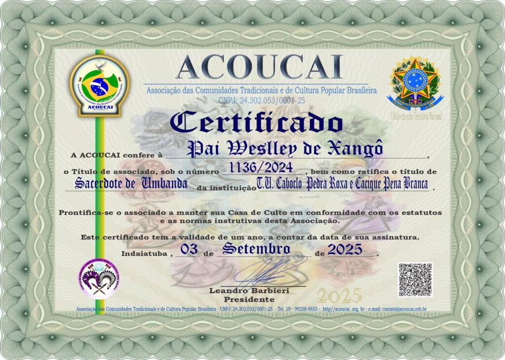 Dirigente da Casa: Tenda de Umbanda e Catimbó Boiadeiro 7 Luas e Mestre Besouro
