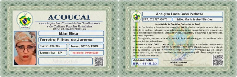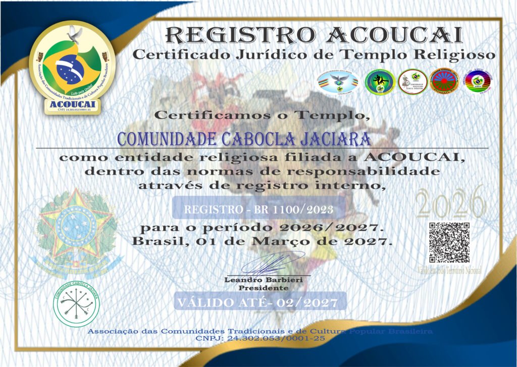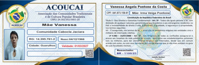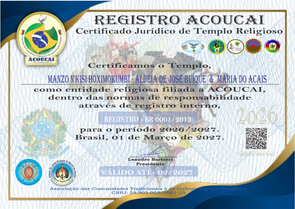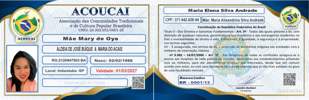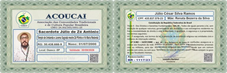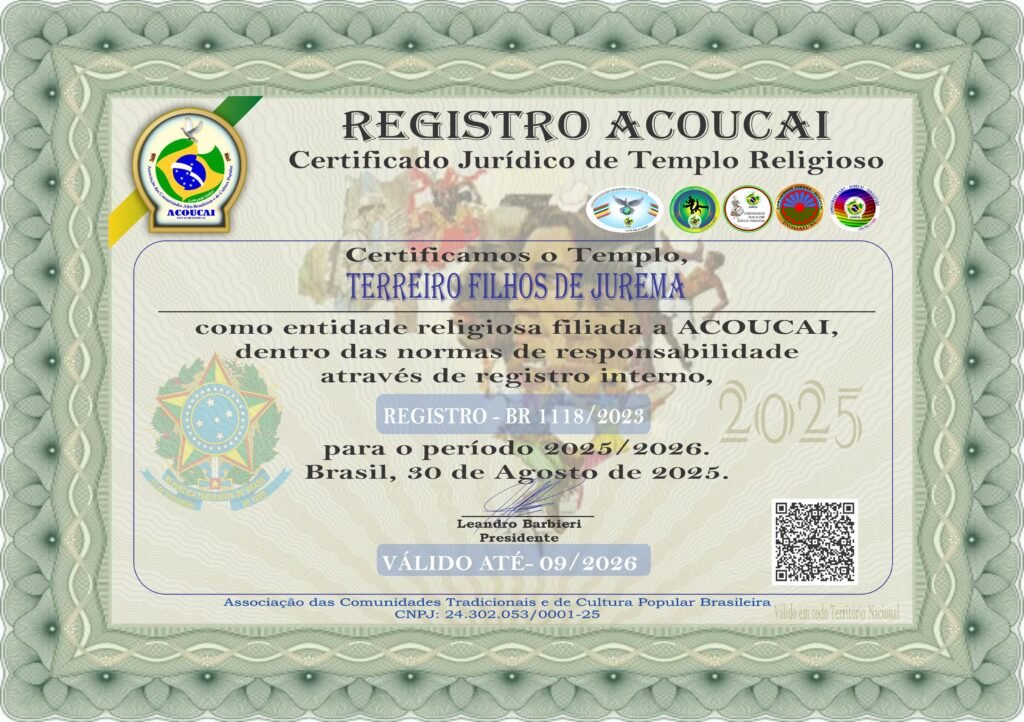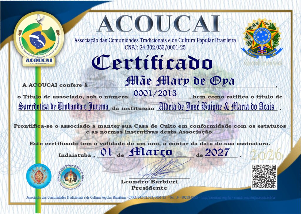Dirigente das Casas de Culto: Templo de Umbanda e Jurema Sagrada Mestre Zé Pilintra e Vó Maria Redonda