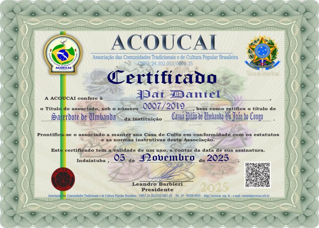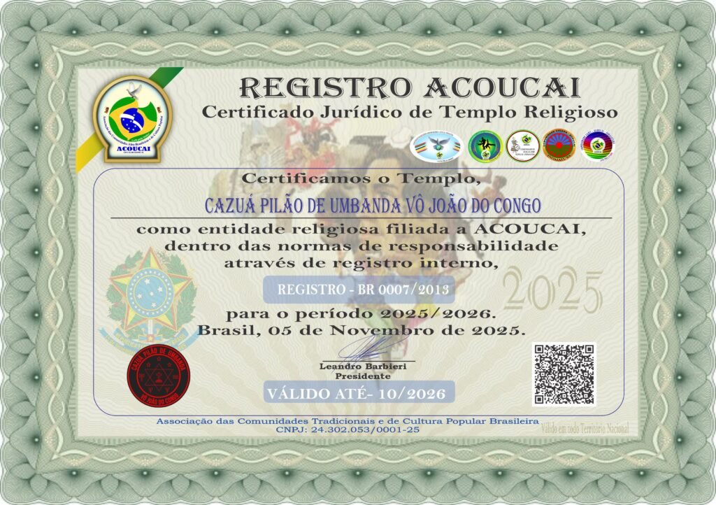 Associado -BR 0007 – Cazuá Pilão de Umbanda Vô João do Congo