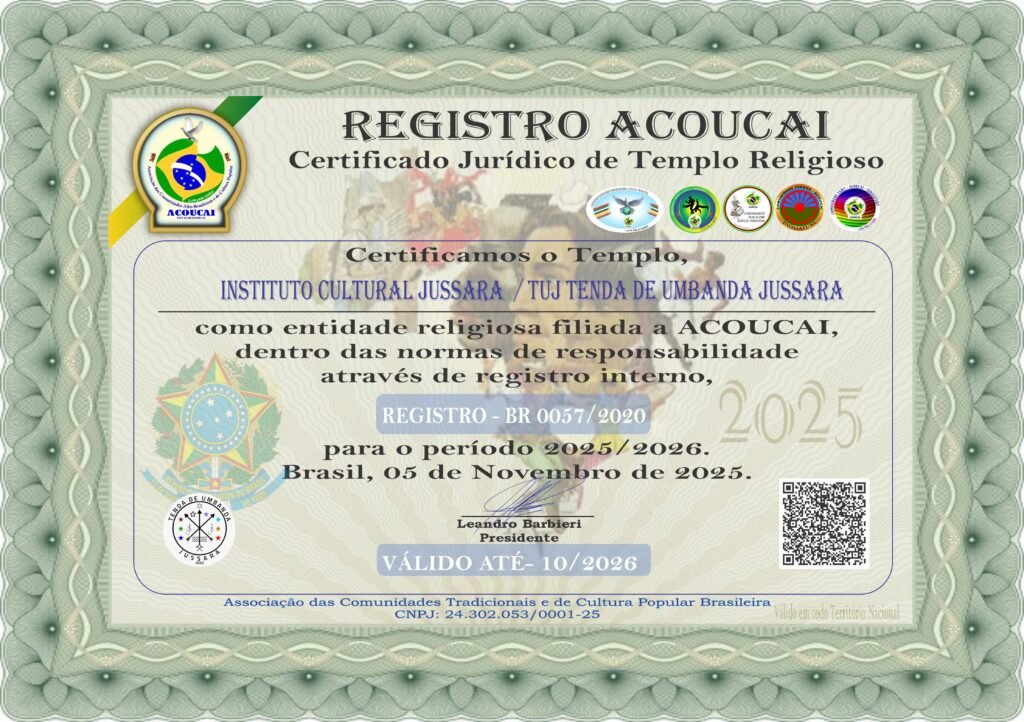 associado br – 0057 Instituto Cultural Jussara -TUJ Tenda de Umbanda Jussara