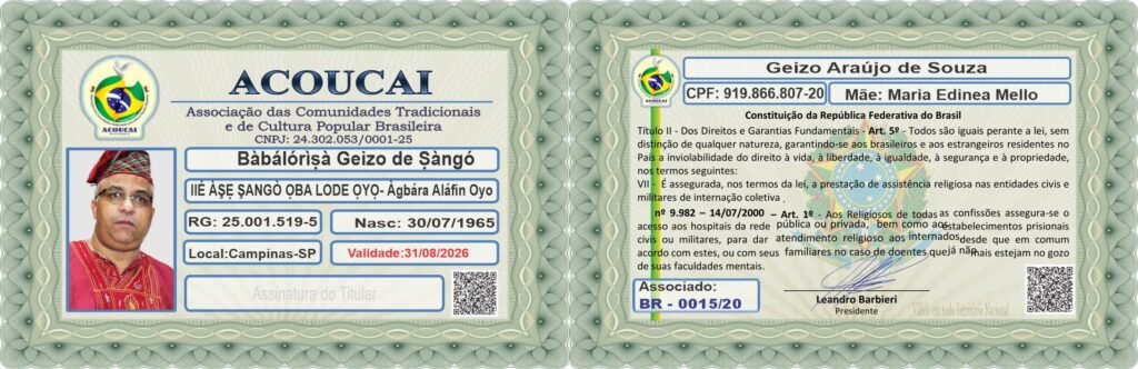 Bàbálórìṣà Geizo de Ṣàngó- Geizo Araújo de Souza