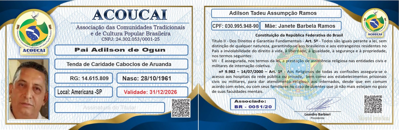 Nome: Pai Adilson de Ogum – Adilson Tadeu Assumpção