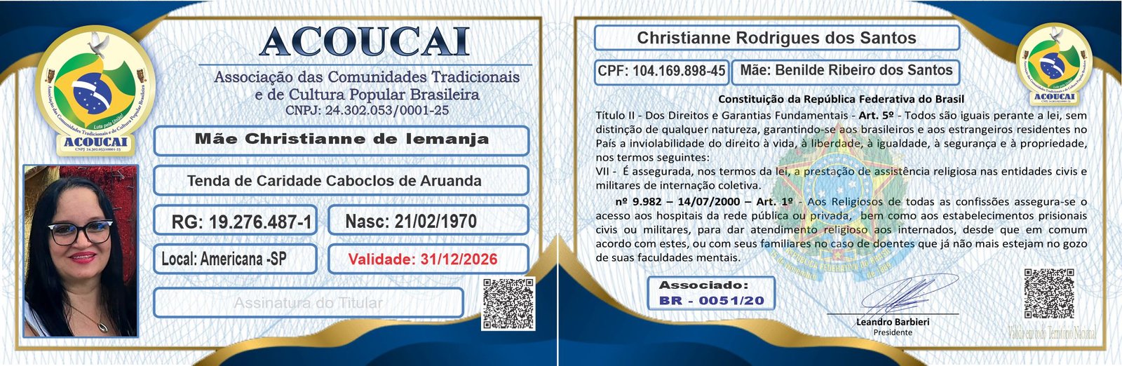 Nome: Mãe Christianne de Iemanjá – Christianne Rodrigues dos Santos